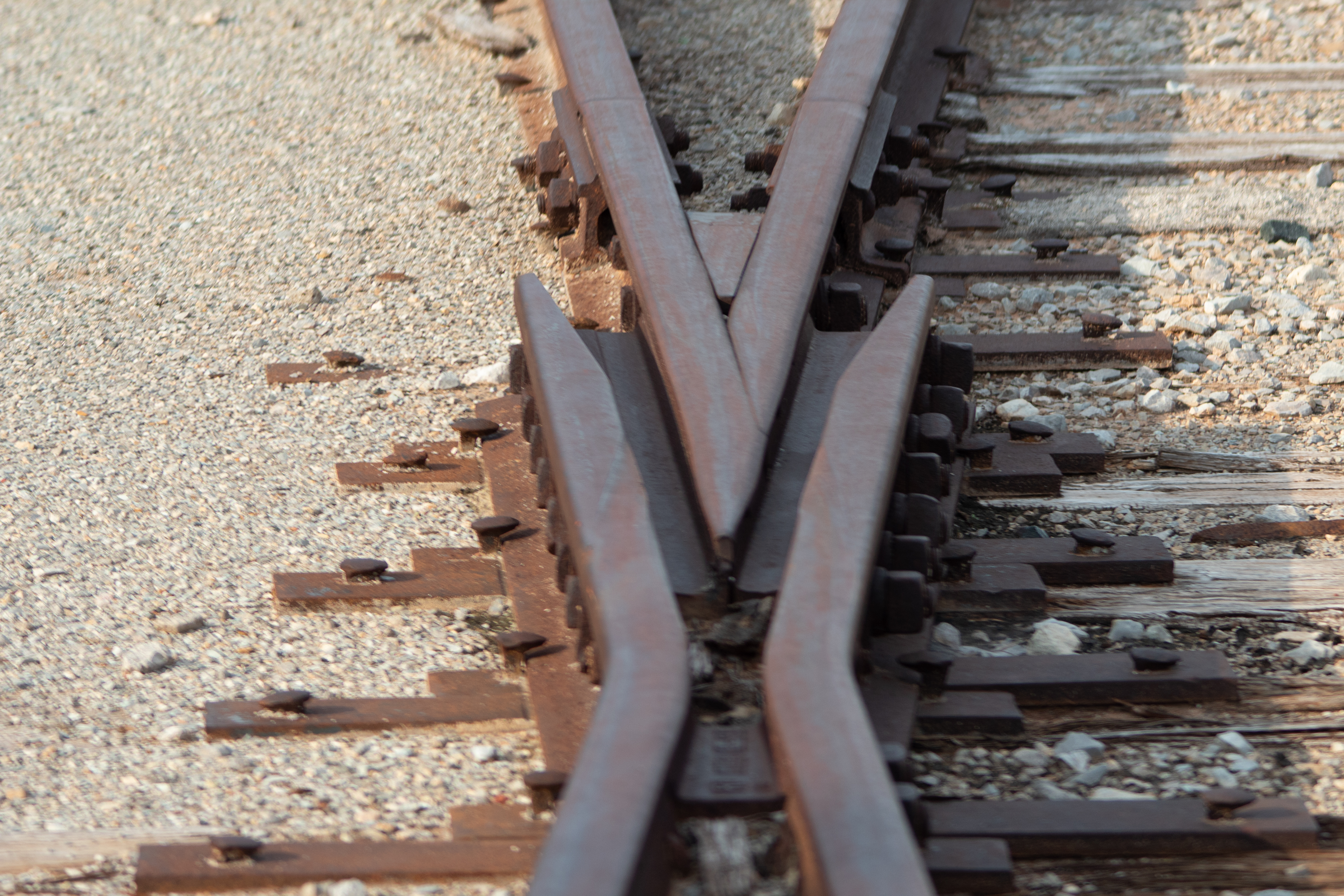 As shot of a train rail intersection in OKC. I rather like the contrast of the rails to the ground colors. This dilapidated old section of track is reminiscent of the old manufacturing areas around the state capitol. Once a boon to the city, now they are hidden from general view as they lapse into obscurity and disrepair.